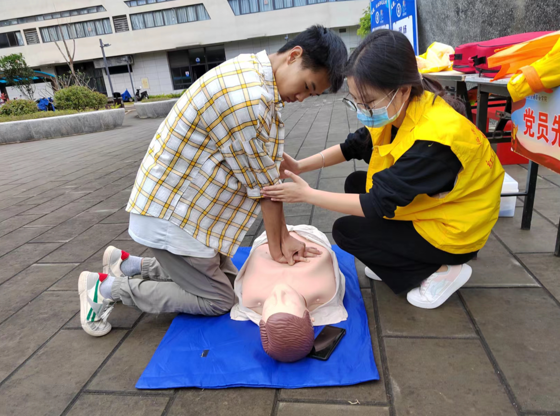 為響應(yīng)2022年職業(yè)教育活動(dòng)周主題活動(dòng),積極推廣現(xiàn)場應(yīng)急救護(hù)技能,安全與環(huán)境學(xué)院安全技術(shù)與管理專業(yè)在南區(qū)校門口開展了“現(xiàn)場應(yīng)急救護(hù)技能展示”職業(yè)技能活動(dòng)。