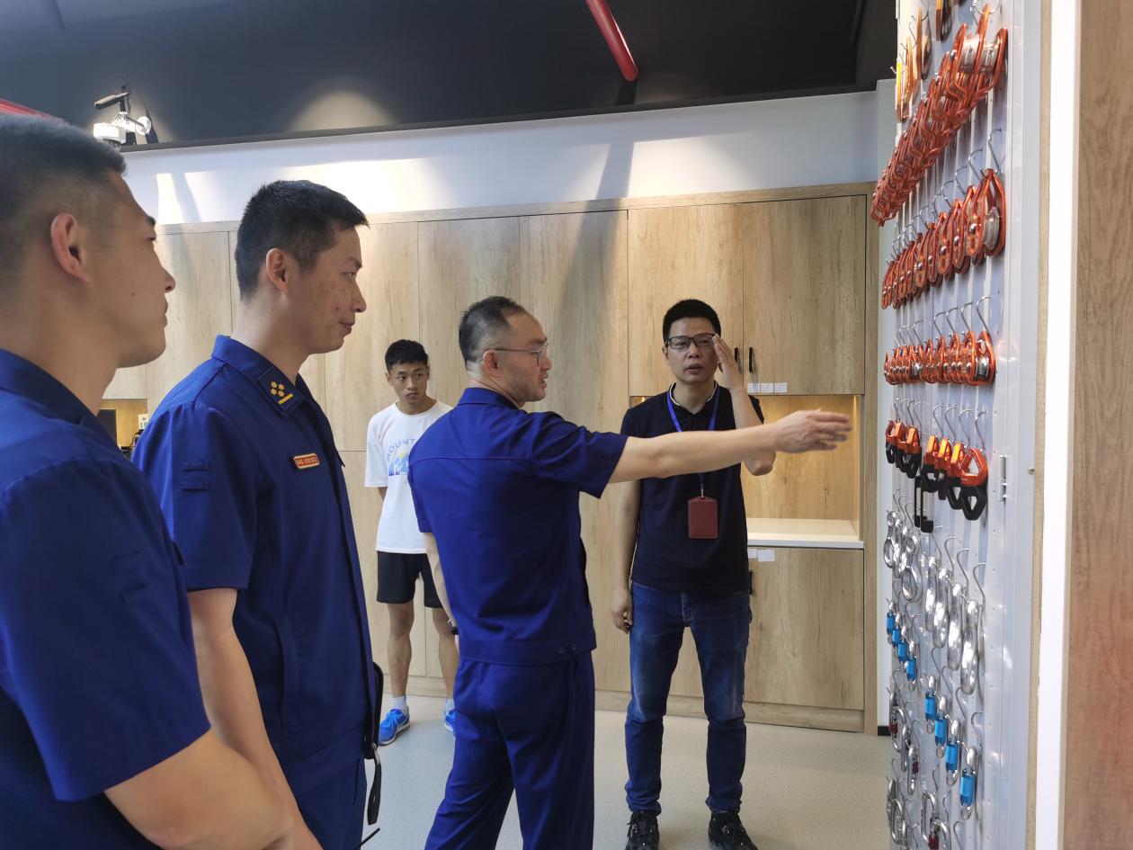 陳明仙院長先陪同王斌主任一行參觀了公共安全產教融合實訓基地、智慧安全工地實訓室、應急救援訓練中心等教學實訓場所。