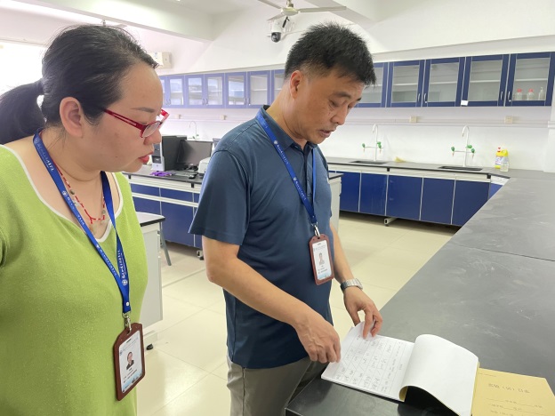 2022年9月30日,陳明仙院長、陳榕副院長、綜辦主任陳敏及實(shí)訓(xùn)中心成員深入實(shí)驗(yàn)室,查看實(shí)驗(yàn)室安全管理相關(guān)記錄情況以及實(shí)驗(yàn)室水、電、氣的安全情況等,重點(diǎn)檢查了危險化學(xué)品的管理、儲存、保管、領(lǐng)用及記錄等情況。