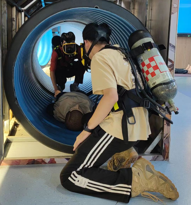 有限空間應(yīng)急救援技能競(jìng)賽是結(jié)合職教周開(kāi)展的系列活動(dòng)之一,通過(guò)以賽促學(xué),提高學(xué)生的應(yīng)急救援技能,營(yíng)造校園“學(xué)技能、比技能、用技能、強(qiáng)技能”的良好氛圍。