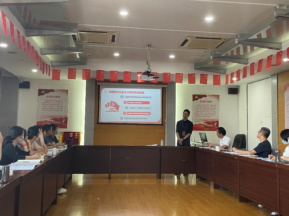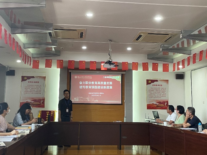 陳明仙院長(zhǎng)結(jié)合雙高建設(shè)和學(xué)院發(fā)展,從建設(shè)中國(guó)特色社會(huì)主義教育強(qiáng)國(guó)、習(xí)近平總書記關(guān)于職業(yè)教育的論述和推進(jìn)職業(yè)教育高質(zhì)量發(fā)展舉措三個(gè)方面展開闡述,指出教育現(xiàn)代化發(fā)展的歷史性成就和格局性變化充分證明了中國(guó)特色社會(huì)主義教育發(fā)展道路的正確性。仰觀大局,教育的使命無比光榮、責(zé)任無比重大,要求大家要敢于擔(dān)當(dāng)作為,勇于攻堅(jiān)克難,在團(tuán)結(jié)中奮進(jìn),在競(jìng)爭(zhēng)中超越,在推動(dòng)現(xiàn)代職業(yè)教育高質(zhì)量發(fā)展的新征程中貢獻(xiàn)力量。