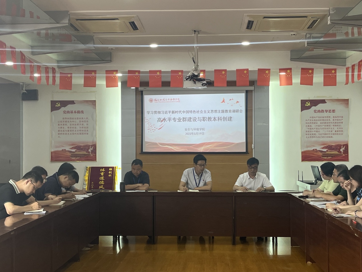 為扎實(shí)推動(dòng)學(xué)習(xí)貫徹習(xí)近平新時(shí)代中國特色社會(huì)主義思想主題教育走深走實(shí),5月19日,安全與環(huán)境學(xué)院召開高水平專業(yè)群建設(shè)與職教本科創(chuàng)建調(diào)研會(huì)。學(xué)院院長陳明仙教授主持會(huì)議,副院長陳榕、副院長范自盛,安全技術(shù)與管理專業(yè)、環(huán)境工程技術(shù)專業(yè)、應(yīng)急救援技術(shù)專業(yè)教研室主任和骨干教師參加。