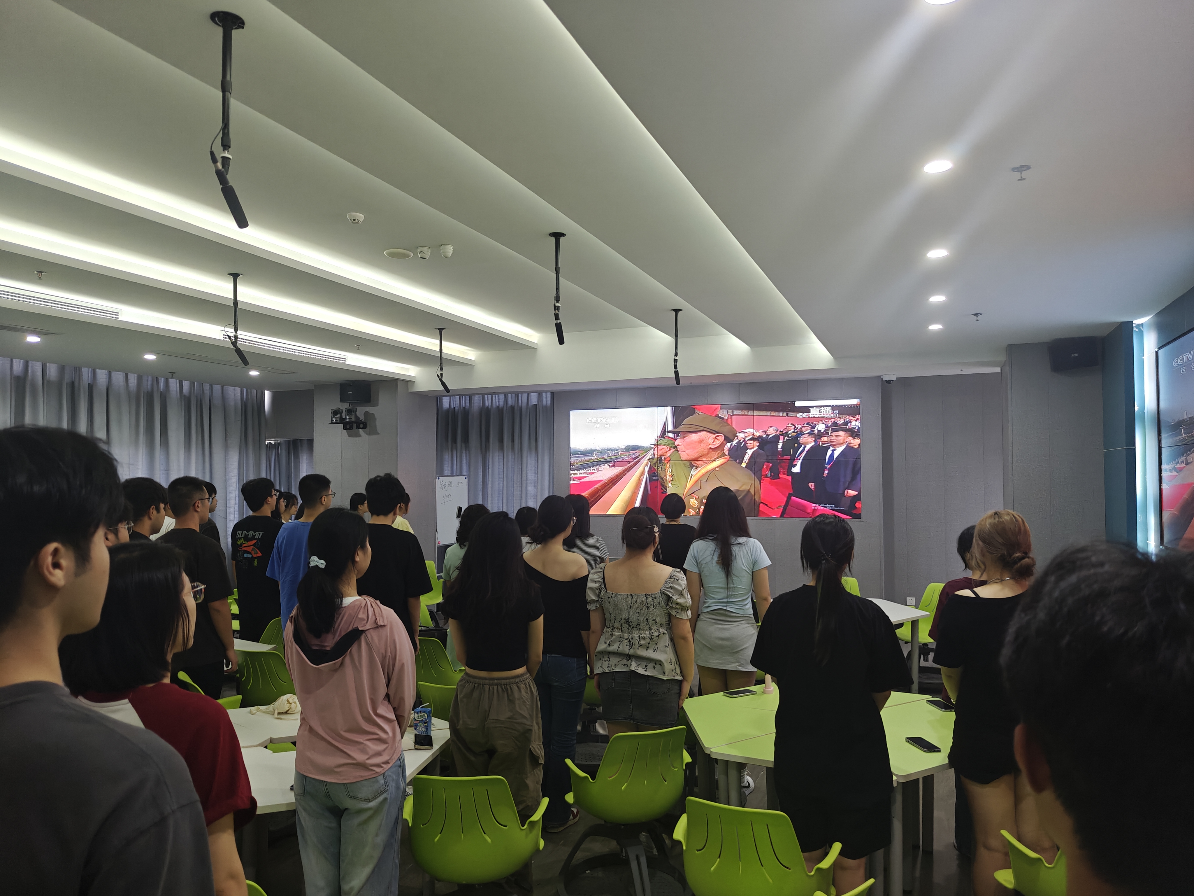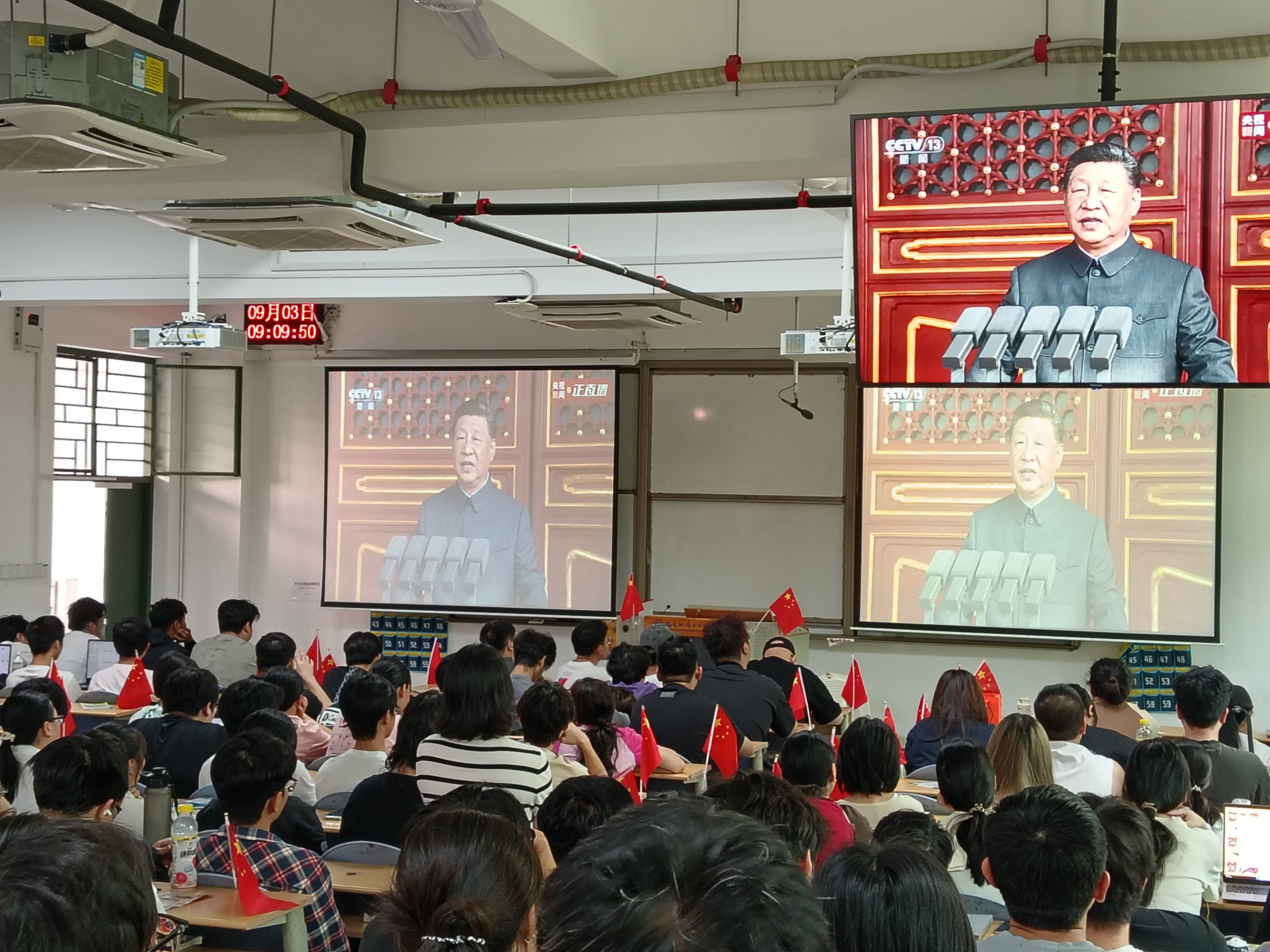 2025年9月3日,紀(jì)念中國(guó)人民抗日戰(zhàn)爭(zhēng)暨世界反法西斯戰(zhàn)爭(zhēng)勝利80周年,安全與環(huán)境學(xué)院組織全院師生集中收看了莊嚴(yán)盛大的九三閱兵式。學(xué)院在藝新樓二樓公共安全融合實(shí)訓(xùn)基地安全宣教室、各年級(jí)班級(jí)同步設(shè)立分會(huì)場(chǎng),確保師生全員參與。閱兵式上,英姿颯爽的解放軍方陣、震撼人心的武器裝備展示以及鏗鏘有力的口號(hào)聲,讓現(xiàn)場(chǎng)師生深受感染,愛國(guó)熱情高漲。