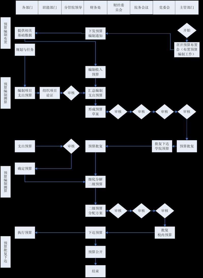 職能部門(mén)審核意見(jiàn) → 分管院領(lǐng)導(dǎo)審批 →財(cái)務(wù)處匯總 → 分管財(cái)務(wù)院領(lǐng)導(dǎo)審批 → 財(cái)務(wù)處根據(jù)指示調(diào)整。
