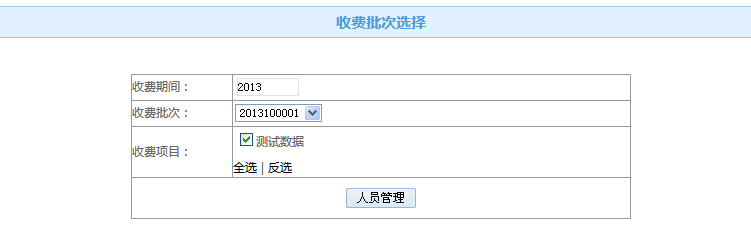 選擇需要管理的批次項目后,點擊人員管理進入收費人員管理界面,如圖4.3-2收費人員管理。(也可在收費批次管理中點擊選擇批次,點擊人員管理進入該管理功能界面)。