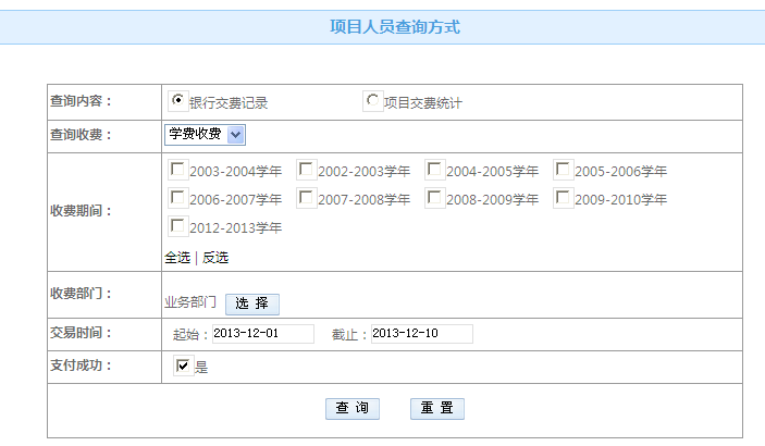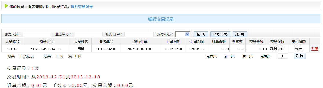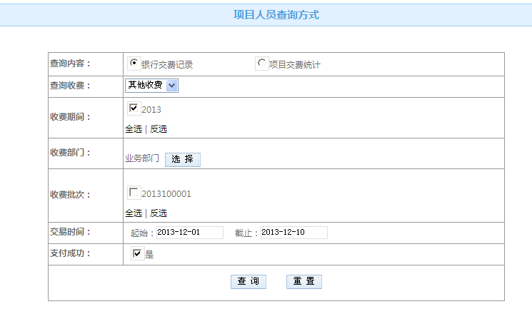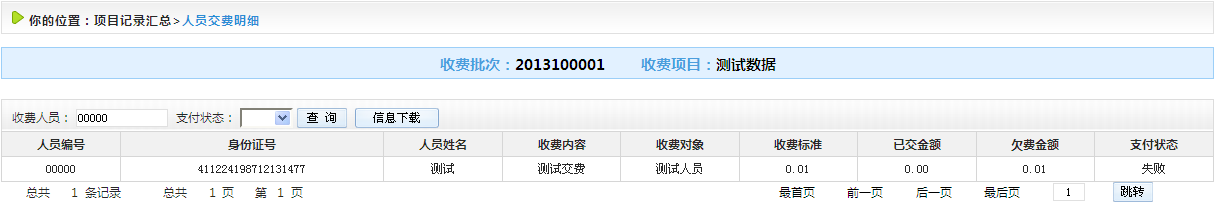 選擇收費項目,輸入人員姓名、編號、身份證號以及支付狀態(tài),點擊