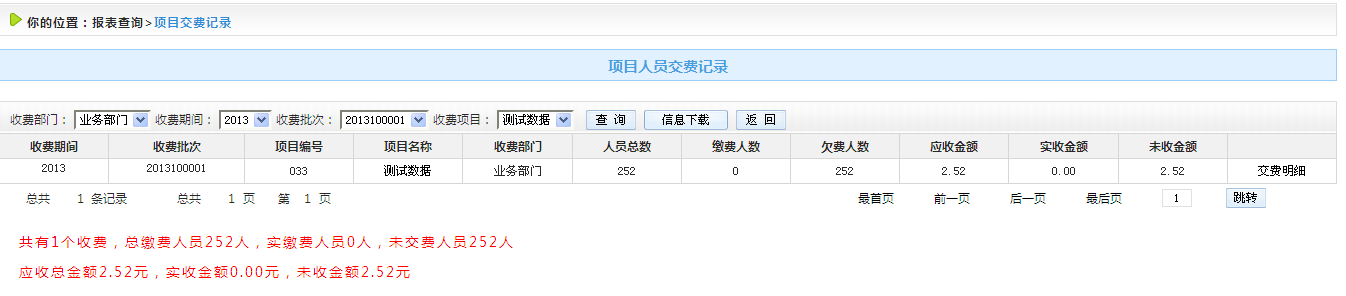 4.3.1.2項目交費統(tǒng)計