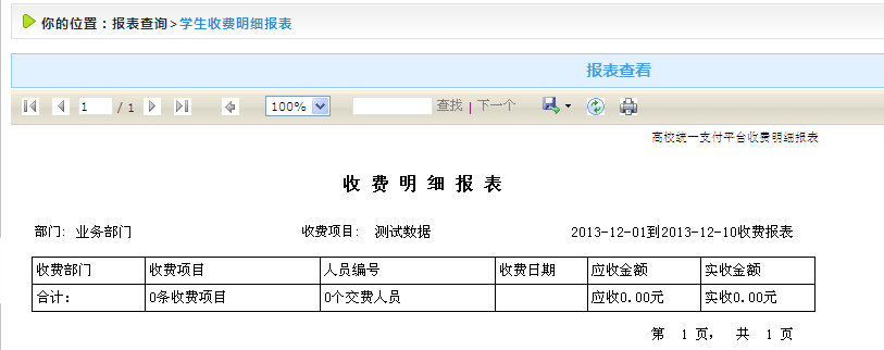 收費明細報表如圖4.4.2-2所示,點擊報表菜單欄的
