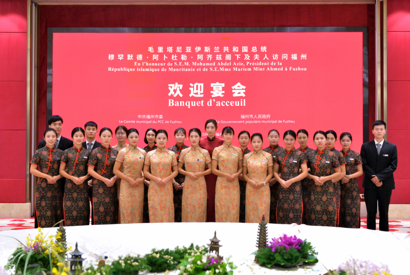 航海技術(shù)系國(guó)際郵輪乘務(wù)管理專業(yè)與廈門建發(fā)集團(tuán)旗下高端酒店不斷深化校企合作,產(chǎn)教融合試點(diǎn)現(xiàn)代學(xué)徒制辦學(xué)模式。廈門建發(fā)集團(tuán)系統(tǒng)化培訓(xùn)我院國(guó)際郵輪乘務(wù)管理專業(yè)學(xué)生,著力打造金磚會(huì)議標(biāo)準(zhǔn)的高端政務(wù)專屬接待團(tuán)隊(duì)。2018年9月7-8日,福建省政府、福州市委在西湖大酒店設(shè)宴接待剛出席中非合作論壇北京峰會(huì)的毛里塔尼亞伊斯蘭共和國(guó)總統(tǒng)穆罕默德·烏爾德·阿卜杜勒·阿齊茲和中非共和國(guó)總統(tǒng)福斯坦·阿爾尚熱·圖瓦德拉。作為一級(jí)外事接待,酒店根據(jù)國(guó)宴的標(biāo)準(zhǔn)進(jìn)行設(shè)宴,16級(jí)和17級(jí)國(guó)際郵輪乘務(wù)管理專業(yè)高端政務(wù)專屬接待團(tuán)隊(duì)參與本次接待外賓禮儀服務(wù),這支隊(duì)伍在高端政務(wù)禮儀服務(wù)中展現(xiàn)新時(shí)代大學(xué)生愛國(guó)情懷、無(wú)私奉獻(xiàn)、青春朝氣和責(zé)任擔(dān)當(dāng),贏得總統(tǒng)和酒店方贊譽(yù)。