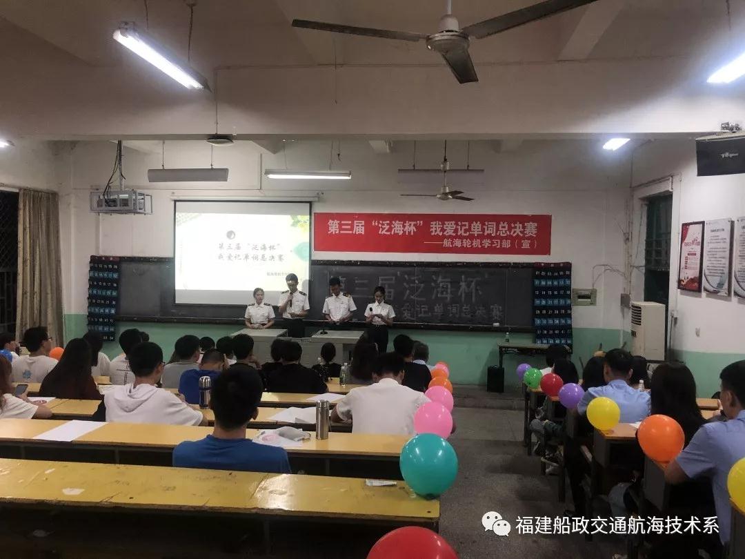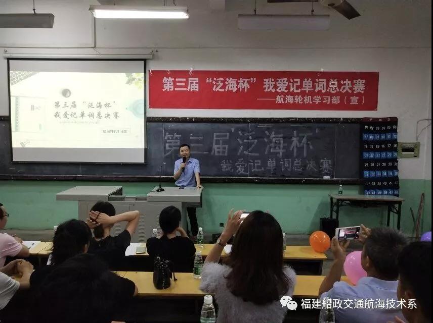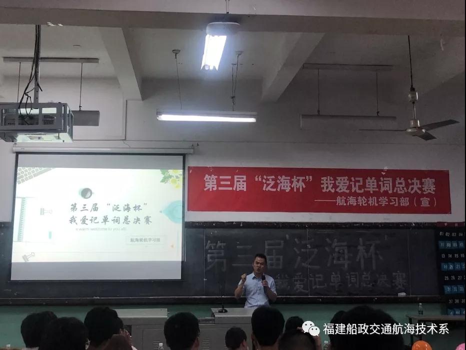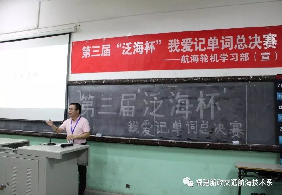 2019年5月22日晚,由航海技術(shù)系學(xué)習(xí)部、輪機(jī)工程系學(xué)習(xí)部主辦、由廈門泛海國際船舶管理有限公司贊助的的第三屆“泛海杯”我愛記單詞英語大賽決賽在航東大圓滿落幕。航海技術(shù)系副主任翁國玲副教授、廈門泛海國際船舶管理有限公司副總經(jīng)理周永煌、廈門泛海國際船舶管理有限公司業(yè)務(wù)一部經(jīng)理吳文炳船長(zhǎng)、航海技術(shù)系林森茂老師、輪機(jī)工程系方麗君老師,航海技術(shù)系、輪機(jī)工程系學(xué)生會(huì)主席團(tuán)代表、參賽選手參與此次大賽,本次大賽由翁國玲副教授、林森茂老師、方麗君老師擔(dān)任現(xiàn)場(chǎng)評(píng)委。