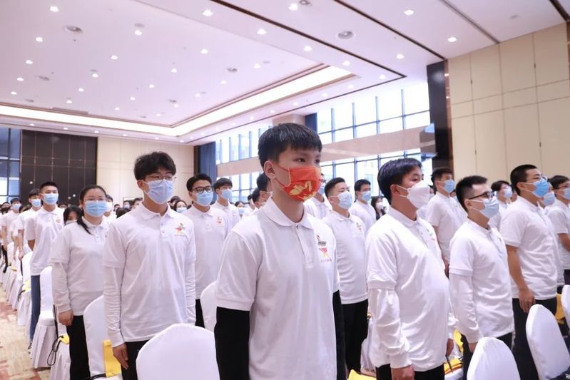 本次青馬工程在熱血澎湃的中國共青團(tuán)團(tuán)歌聲中拉開帷幕,全體學(xué)員起立,奏唱團(tuán)歌!