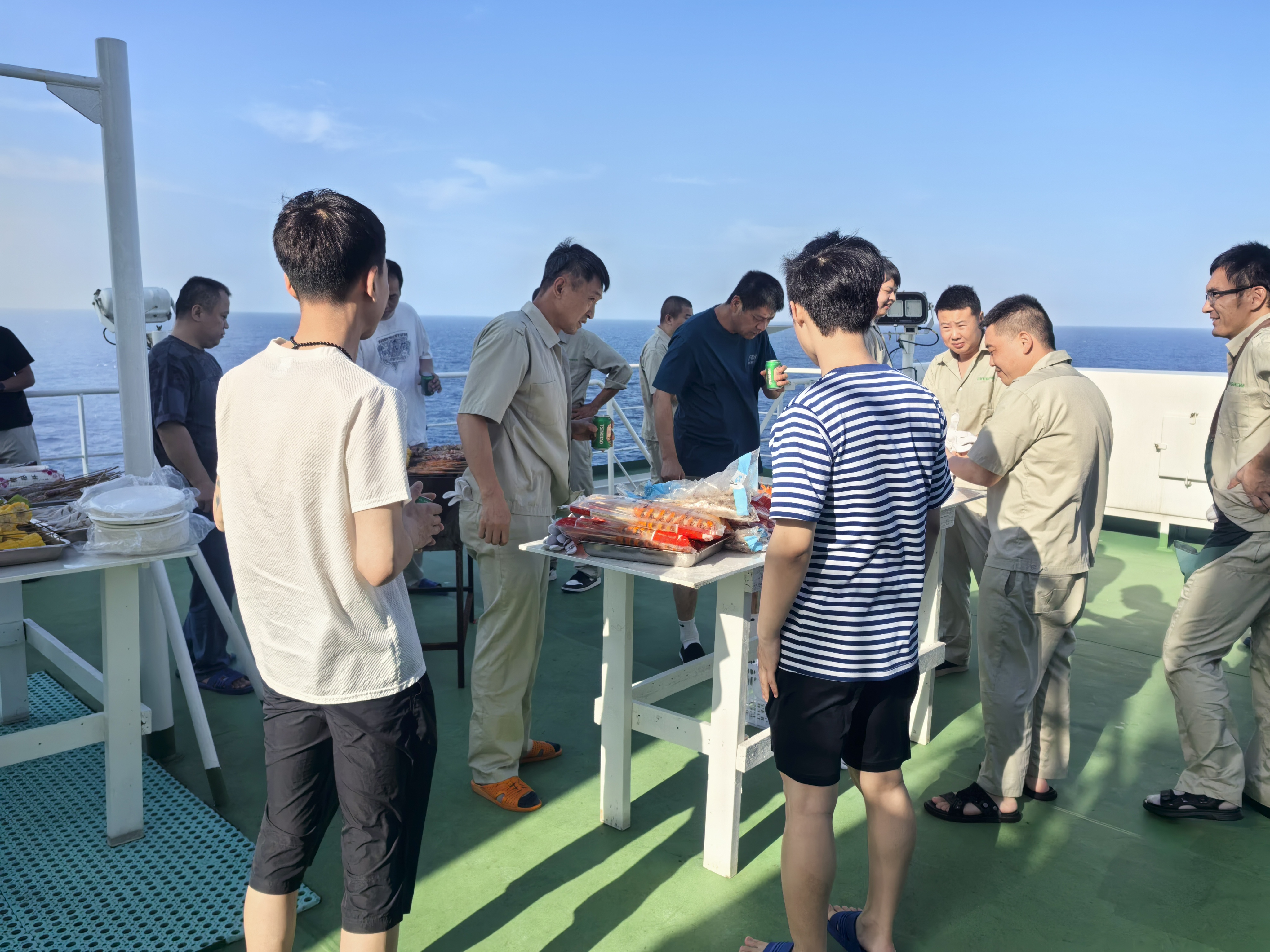 塢修期間,我們在船廠迎來了 2025 年春節(jié)。作為剛畢業(yè)不久的學生,這是我第一次離家這么遠過年,也是第一次在船上過年。除夕當天,船廠放假,我們開始著手準備年夜飯。作為實習生,我主動提出幫忙,和大廚一起忙碌。雖然我做菜經(jīng)驗不多,但在大廚的耐心指導下,經(jīng)過一番努力,總算順利完成了年夜飯的制作。我和大家一同分享新年的喜悅,還與幾位船員合影留念,定格下這個特別又有意義的新年瞬間。對于第一次離家過年的我來說,船上輕松愉快的氛圍緩解了我的思鄉(xiāng)之情,同事們的關心與照顧也讓我倍感溫暖。除夕夜,大家歡聚一堂,一邊享用美食,一邊互送新年祝福。當新年鐘聲敲響時,我們共同舉杯,祝愿新的一年航行順利、一帆風順。對我而言,這次船上的新年既難忘又珍貴,能和一群志同道合的同事并肩工作,更是一件無比開心的事。都說 “百年修得同船渡”,我為自己能擁有這樣優(yōu)秀的同事團隊而感到幸運。