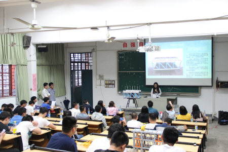 4月26日下午,由道路工程團(tuán)委學(xué)生會(huì)舉辦的“世界夢(mèng)交匯的橋梁2017橋模大賽”于8#第一階梯教室舉行。本次大賽分為“展示”、“演講”、“答辯”三個(gè)環(huán)節(jié),要求選手利用一些廢棄材料來制作模型,并針對(duì)模型的構(gòu)思、制作過程、設(shè)計(jì)說明、設(shè)計(jì)方案方面等進(jìn)行簡(jiǎn)要陳述。我系各班學(xué)生選送了包括古橋、近現(xiàn)代橋、創(chuàng)意橋等三大類,共25組橋梁模型參與角逐。