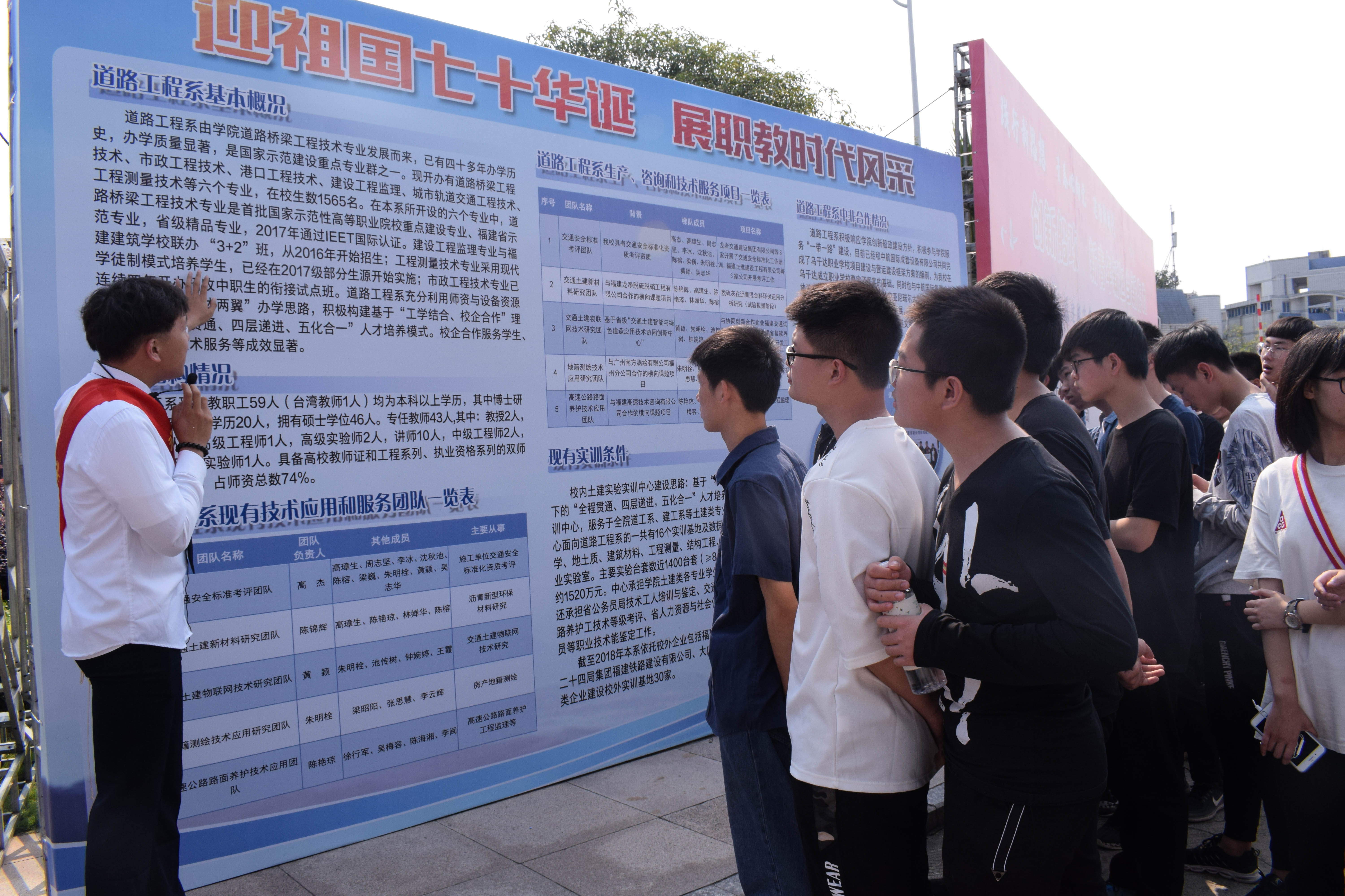 本次“迎祖國(guó)七十華誕·展職教時(shí)代風(fēng)采”文化交流學(xué)習(xí)的活動(dòng),充分體現(xiàn)了我校職業(yè)教育的成果,也體現(xiàn)了道路工程系所倡導(dǎo)、踐行“誠(chéng)信、創(chuàng)新、奉獻(xiàn)、和諧”為主旨的核心價(jià)值觀。
