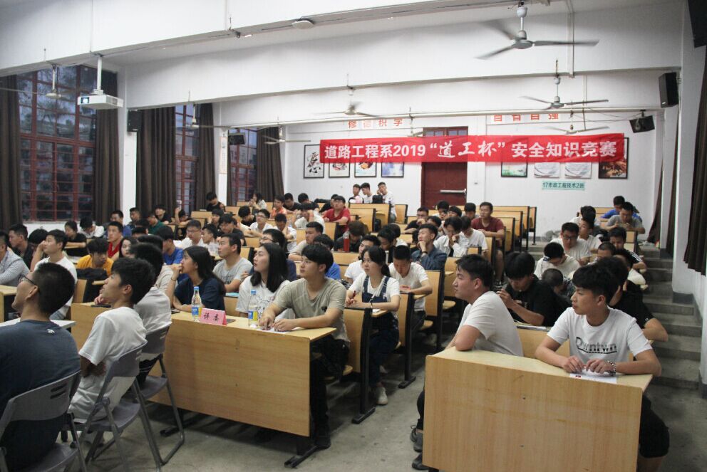 為加強同學們的安全防護意識,減少和防止人身傷害,促進養(yǎng)成良好的生活習慣,道路工程系于2019年4月25日在8號樓土一、土二階梯教室舉辦了“道工杯”安全知識競賽。