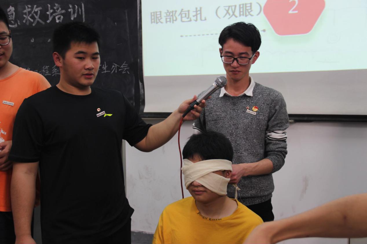 在培訓(xùn)中,紅十字分會(huì)的成員為大家現(xiàn)場(chǎng)演示并講解了遭遇突發(fā)事故的現(xiàn)場(chǎng)急救:如何讓在搶救的黃金時(shí)間給生命垂危的人做心肺復(fù)蘇等。許多同學(xué)親身體驗(yàn)了心肺復(fù)蘇、人工呼吸、包扎止血等的基本操作,并很快掌握了方法。此次培訓(xùn)不但教授了現(xiàn)場(chǎng)救護(hù)方法,還介紹了其他自救知識(shí),如:投,眼,臂,腿等不同部位的包扎方法,讓大家在輕松的氛圍中學(xué)會(huì)各種急救知識(shí)。