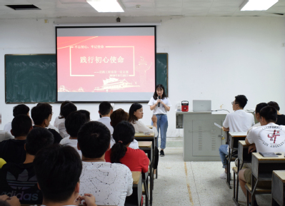 教師黨員陳慧彬表示,踐行初心使命就是落實(shí)立德樹人的根本任務(wù),培養(yǎng)德智體美全面發(fā)展的社會主義建設(shè)者和接班人。作為輔導(dǎo)員,我們把學(xué)習(xí)十九大精神落實(shí)在學(xué)生的思想政治教育中,根據(jù)新時代的要求,為國家和社會作出自己應(yīng)有的貢獻(xiàn)。學(xué)生黨員王夢可表示,我們應(yīng)該明確我們的今天的幸福生活來之不易,作為新時代的青年學(xué)子理應(yīng)肩負(fù)起民族復(fù)興的重任,踐行初心使命,努力學(xué)習(xí),提高自身技能,以實(shí)際行動報(bào)效國家和人民。