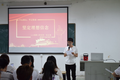 教師黨員顏麗萍在交流發(fā)言時表示,共產(chǎn)主義遠大理想和中國特色社會主義共同理想,是中國共產(chǎn)黨人的精神支柱和政治靈魂,也是保持黨的團結(jié)統(tǒng)一的思想基礎(chǔ)。作為輔導(dǎo)員,我們要堅持把學習貫徹習近平新時代中國特色社會主義思想作為主線貫穿始終,持續(xù)在學懂弄通做實上下功夫,以理論滋養(yǎng)初心、以理論引領(lǐng)使命,弘揚船政精神、傳承紅色基因,自覺做共產(chǎn)主義遠大理想和中國特色社會主義共同理想的堅定信仰者和忠實實踐者。學生黨員陸陳江表示,中國共產(chǎn)黨人的理想信念始終體現(xiàn)在為中國人民謀幸福、為中華民族謀復(fù)興的初心和使命中。作為學生,我們必須認真學習職業(yè)技能,必須用習近平新時代中國特色社會主義思想武裝頭腦,以堅定的理想信念堅守初心,以鮮明的人民立場擔當使命,以徹底的自我革命精神淬煉黨性,隨時堅持真理、隨時修正錯誤,以實際行動樹牢“四個意識”,以實績實效做到“兩個維護”。