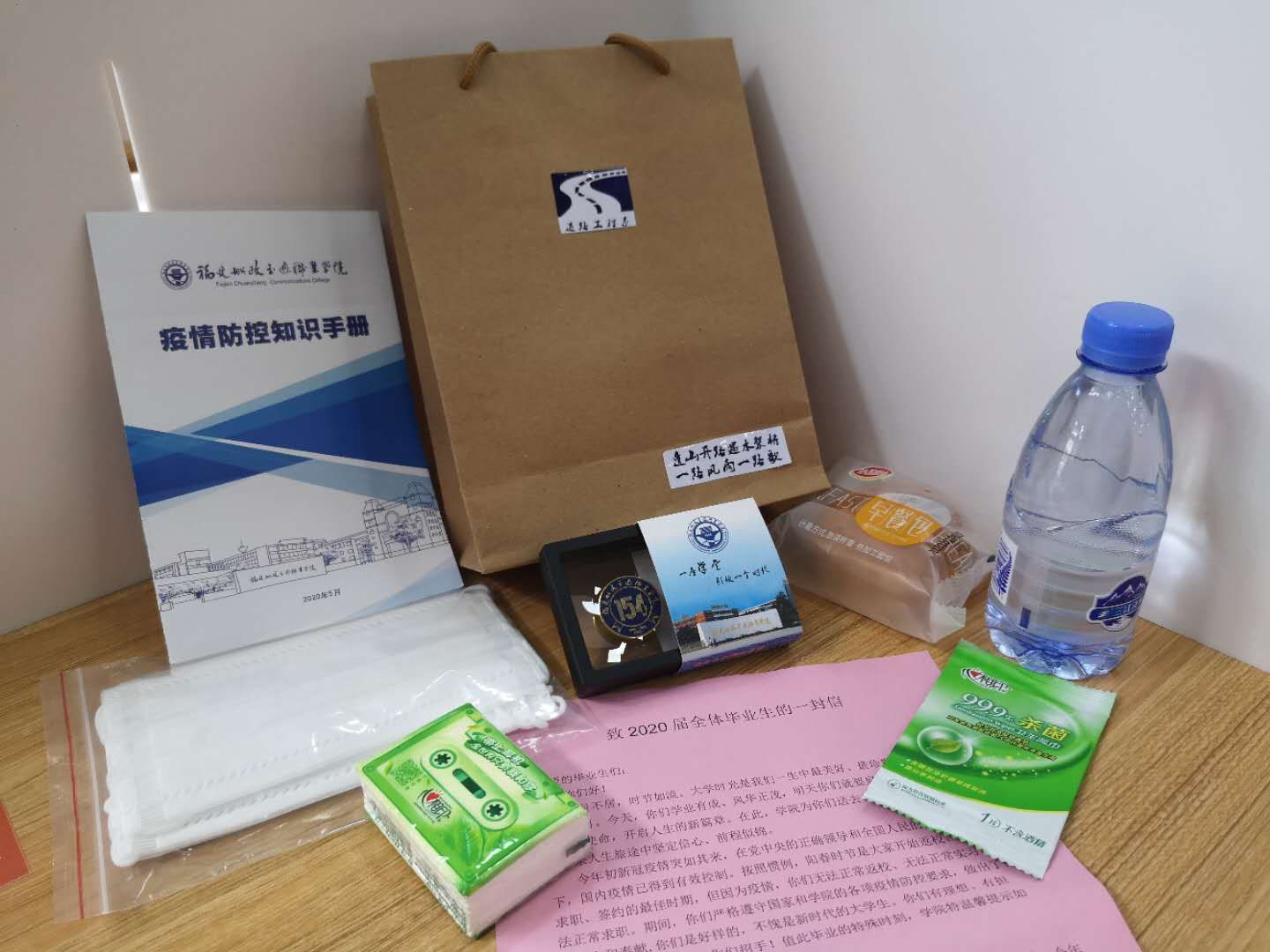 防疫用品、紀念徽章、紙巾、水、 面包,畢業(yè)生一封信