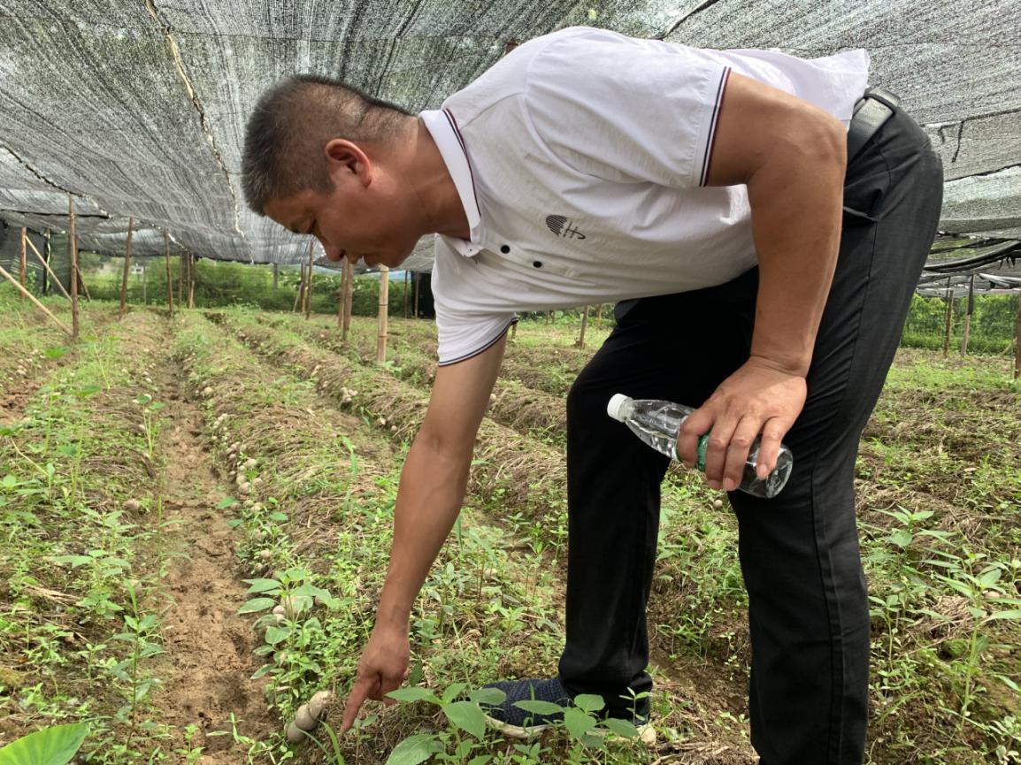 圖十六:村主任伍玉炎帶領(lǐng)隊(duì)員參觀竹蓀大棚生產(chǎn)基地