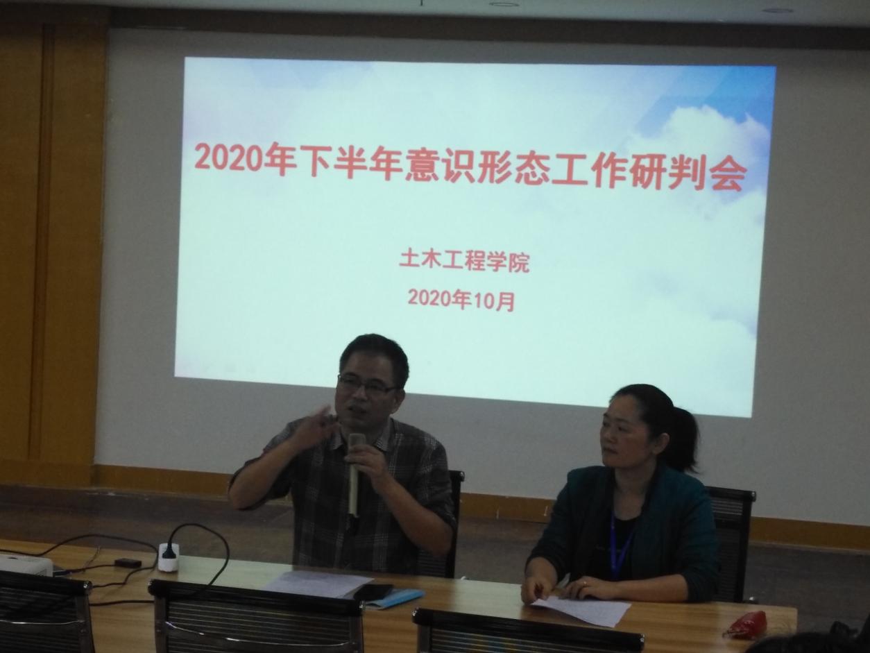 10月21日,土木工程學(xué)院在科技樓1009召開(kāi)2020年下半年意識(shí)形態(tài)研判分析會(huì),土木工程學(xué)院黨總支委員、各黨支部書記、委員、各教研室(辦公室)負(fù)責(zé)人,全體輔導(dǎo)員出席。會(huì)議由土木工程學(xué)院黨總支書記高杰同志主持。