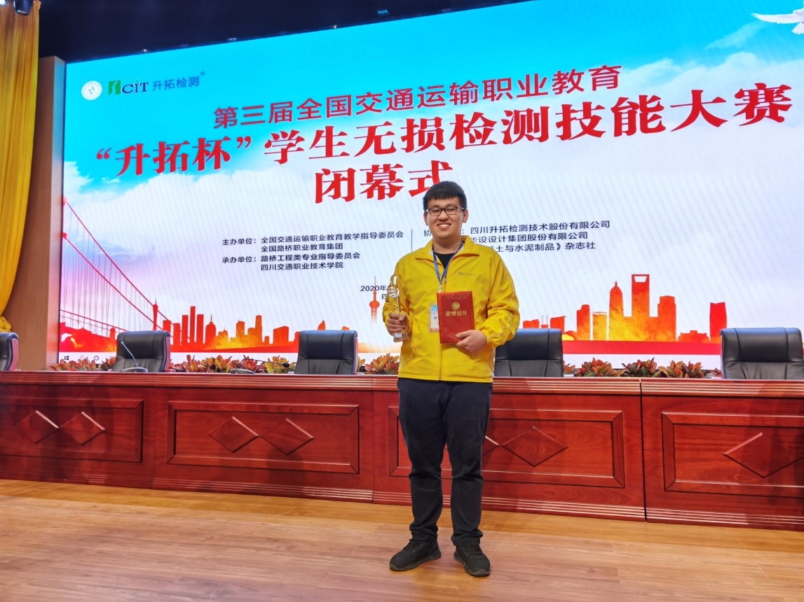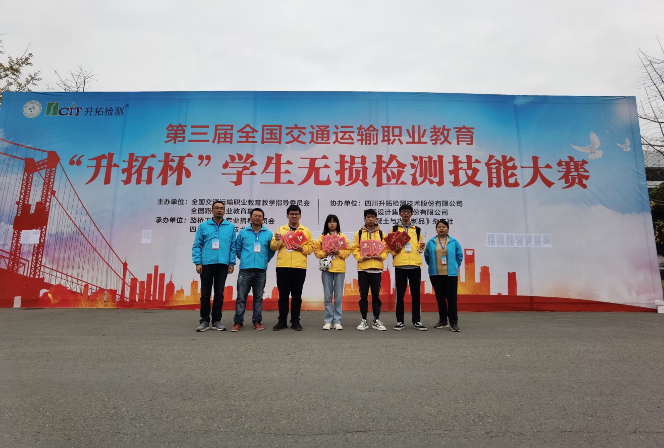 2020年11月17日至11月21日,第三屆“升拓杯”學(xué)生無損檢測技能大賽在四川交通職業(yè)技術(shù)學(xué)院舉辦,共有來自全國26個省、市、自治區(qū)79所院校的160支代表隊參加。本次競賽包括理論競賽和實操競賽兩部分,其中實操競賽有混凝土結(jié)構(gòu)厚度及缺陷測定、錨桿長度測定、鋼筋保護層厚度及鋼筋間距測定等項目。我院學(xué)子踴躍爭先、配合默契,表現(xiàn)出了良好的精神風(fēng)貌,取得優(yōu)異成績。兩支參賽隊取得團體二等獎兩項;錨桿長度測定單項一等獎一項(排名第一),二等獎一項;混凝土結(jié)構(gòu)厚度及缺陷測定一等獎一項,三等獎一項;理論單項二等獎三項。