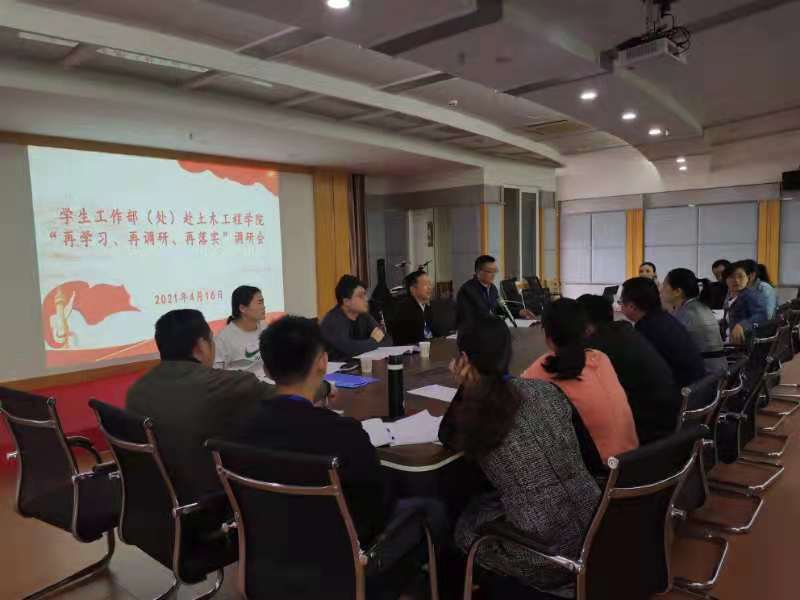 為貫徹落實習(xí)近平總書記來閩考察重要講話精神,推進(jìn)“再學(xué)習(xí)、再調(diào)研、再落實”活動開展,2021年4月16日上午,黨委學(xué)生工作部(處)王心金處長一行四人走訪土木工程學(xué)院調(diào)研,土木工程學(xué)院黨總支副書記任穎卿和全體輔導(dǎo)員參加了調(diào)研座談會。