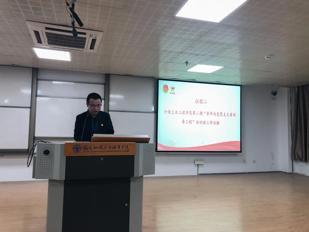為深入學(xué)習(xí)貫徹習(xí)近平新時(shí)代中國(guó)特色社會(huì)主義思想,培養(yǎng)新時(shí)代青年馬克思主義者,進(jìn)一步落實(shí)在團(tuán)員青年中深入開(kāi)展“學(xué)黨史、強(qiáng)信念、跟黨走”學(xué)習(xí)教育,提高青年大學(xué)生的綜合素質(zhì),2021年4月21日,土木工程學(xué)院第二期“青年馬克思主義培養(yǎng)工程”培訓(xùn)班開(kāi)班儀式在科技樓305順利開(kāi)班。土木工程學(xué)院黨總支副書(shū)記任穎卿、團(tuán)委林森茂老師、林健鋒老師、黃華達(dá)老師,2019級(jí)主要團(tuán)學(xué)干部和126名青馬班學(xué)員參加開(kāi)班儀式。開(kāi)班儀式由團(tuán)委宣傳委員傅燕超老師主持。