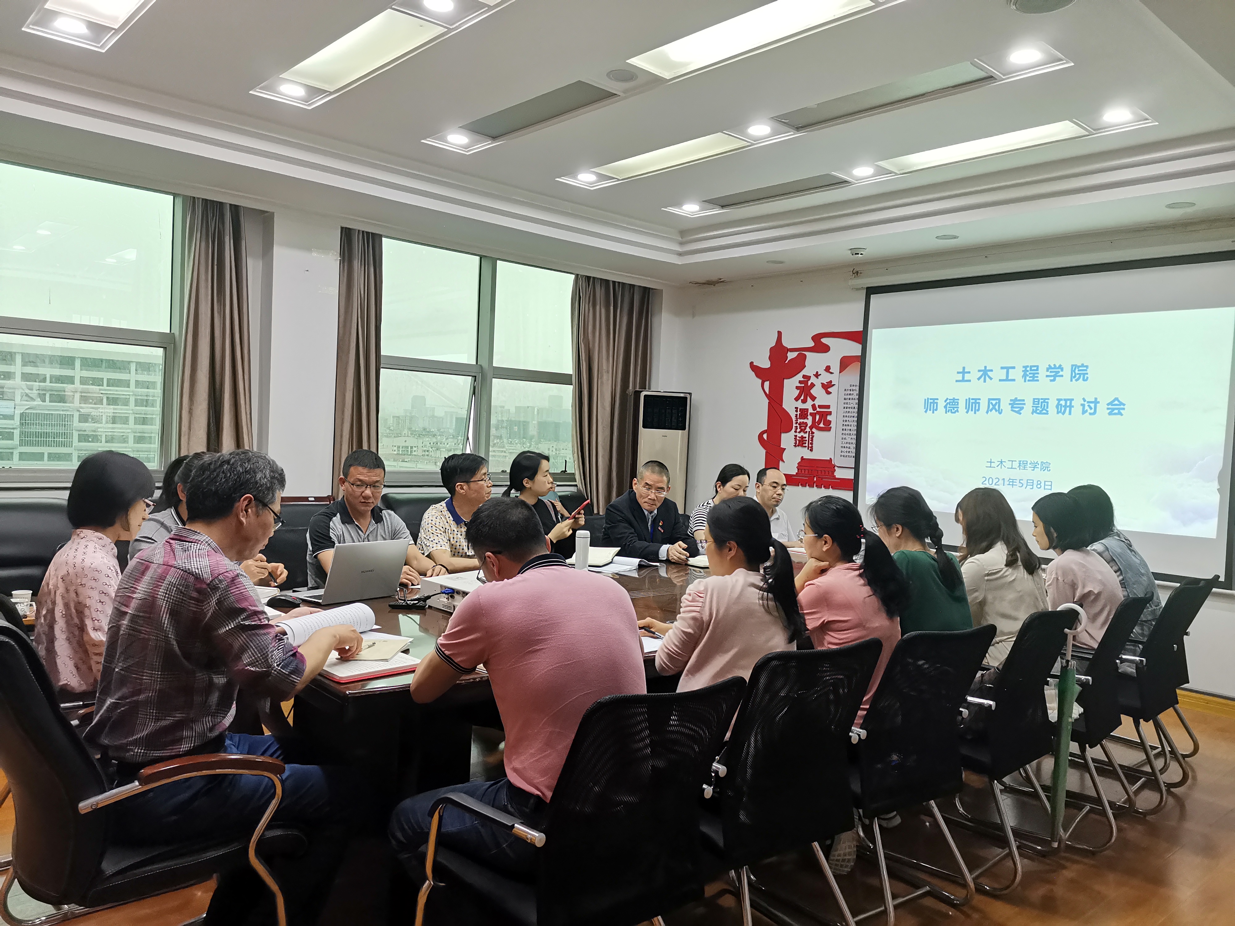 為加強師德師風(fēng)建設(shè),落實《新時代高校教師職業(yè)行為十項準(zhǔn)則》和立德樹人根本任務(wù), 樹立教師良好形象,5月8日下午,我院在南區(qū)科技樓1009會議室開展了召開師德師風(fēng)專題研討會。土木工程學(xué)院領(lǐng)導(dǎo)、各教研室主任、實訓(xùn)中心主任及部分教師參加了專題研討。