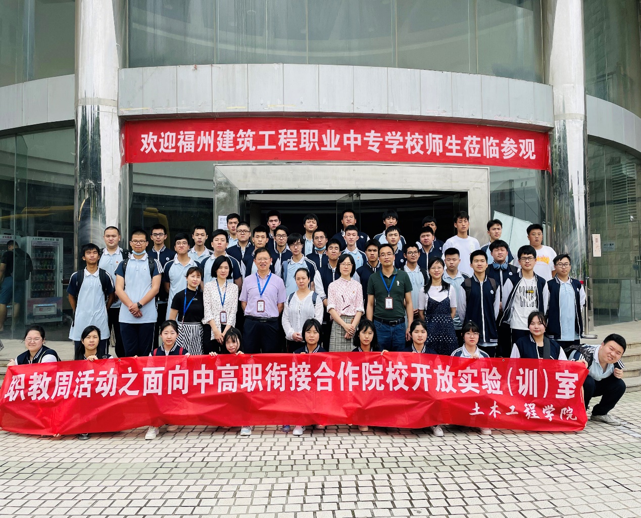 2021年5月22日-28日,福建船政交通職業(yè)學院開展職業(yè)教育活動周,土木工程學院認真貫徹落實學校工作部署,5月23日上午,設(shè)立校園開放日,面向中高職銜接合作院校開放實驗(訓(xùn))室,邀請福州建筑工程職業(yè)中專學校師生來校參觀。