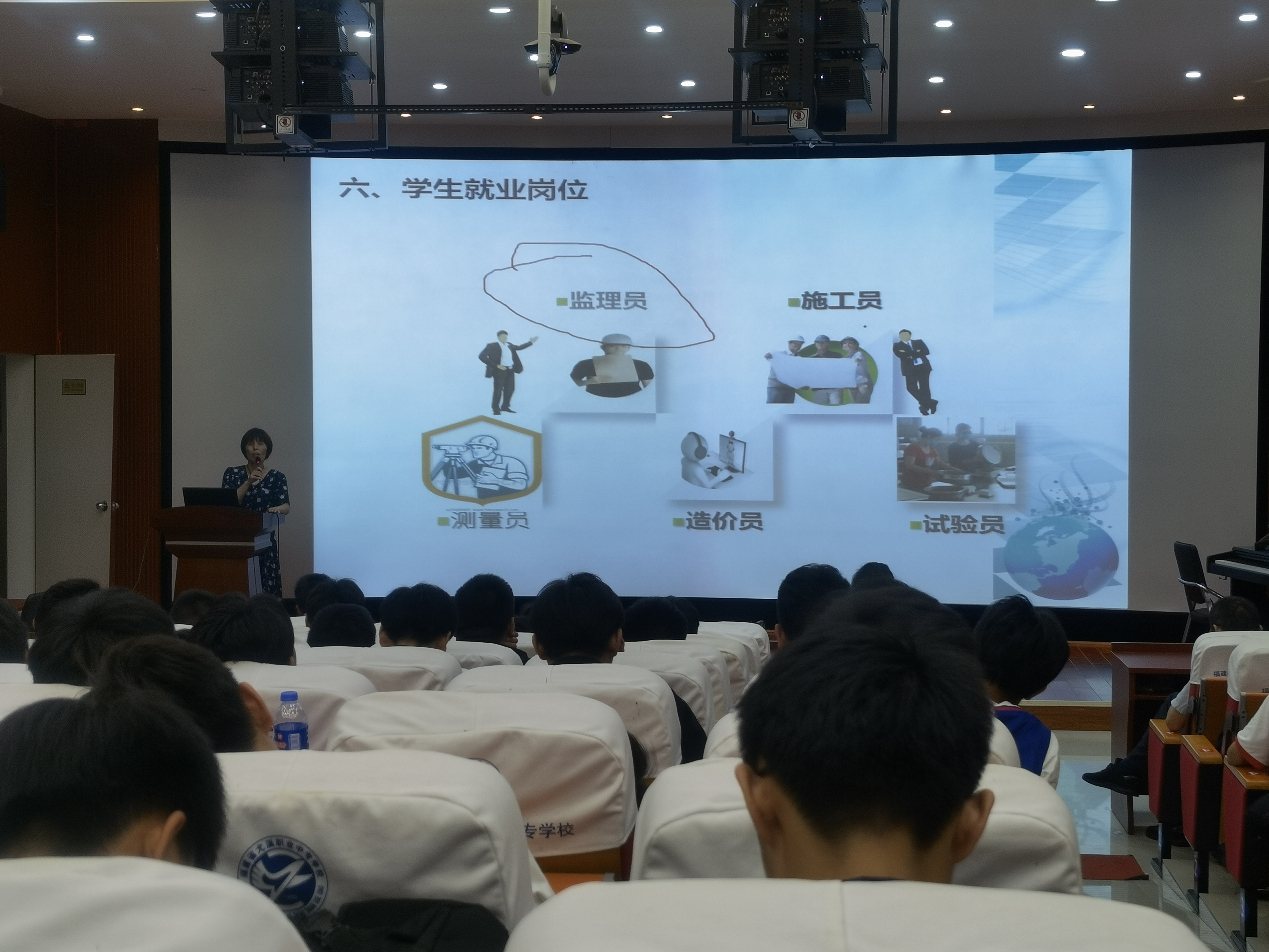 陳艷瓊老師和李琳老師分別就交通土建類專業(yè)的發(fā)展、設(shè)置、行業(yè)企業(yè)的前沿以及職業(yè)崗位的發(fā)展前景等方面向同學(xué)們介紹了建設(shè)工程監(jiān)理專業(yè)及地理信息測繪技術(shù)專業(yè),讓同學(xué)們認(rèn)識到職業(yè)教育中“產(chǎn)學(xué)一體、工學(xué)結(jié)合”的學(xué)習(xí)模式,闡述了在職業(yè)生涯中應(yīng)該“職業(yè)選擇”和“職業(yè)堅(jiān)守”的問題,幫助學(xué)生們提早思考職業(yè)發(fā)展的方向。企業(yè)專家龔隆華介紹了無人機(jī)的發(fā)展及無人機(jī)在各行業(yè)各領(lǐng)域的應(yīng)用和創(chuàng)新點(diǎn)。