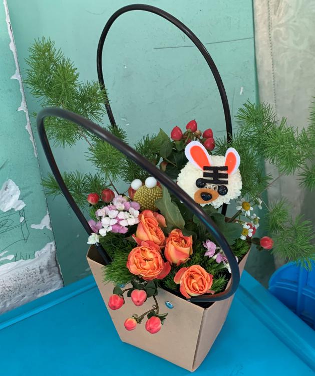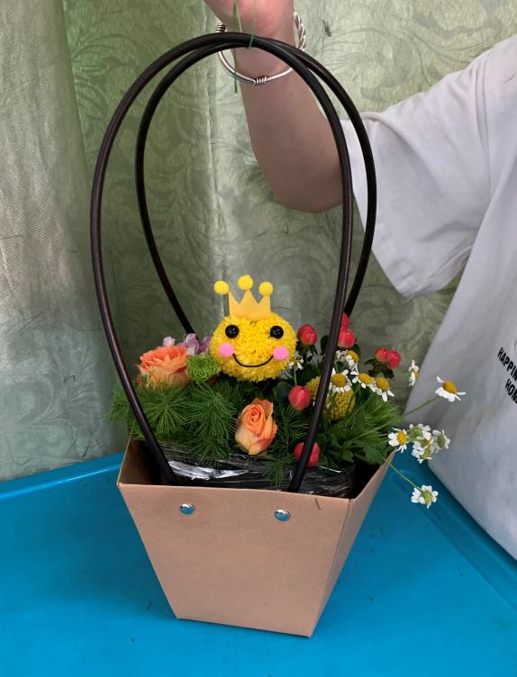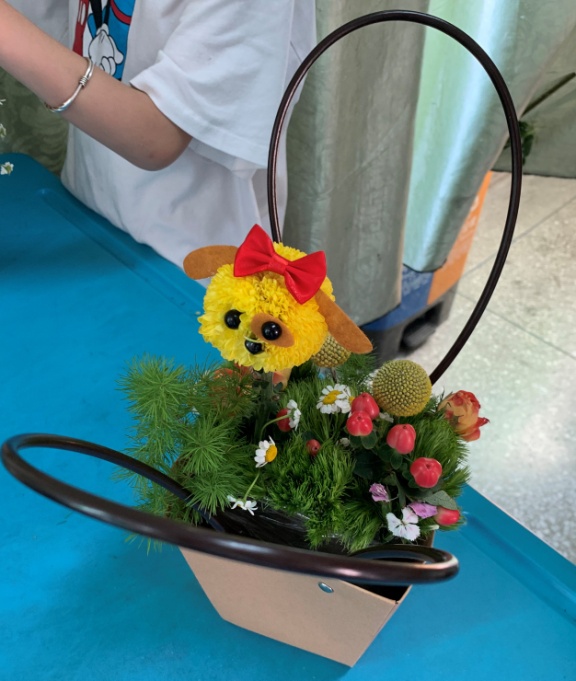 在現(xiàn)場(chǎng)制作環(huán)節(jié),花藝技能競(jìng)賽獲獎(jiǎng)學(xué)生為小朋友們分發(fā)了花材及工具,小朋友們就迫不及待地動(dòng)起手來(lái)。大哥哥大姐姐們也忙著幫小朋友們裹花泥、指導(dǎo)插花、粘膠配件等。經(jīng)過(guò)半個(gè)多小時(shí)的功夫,小朋友們的作品都基本完成了,大家看著自己辛苦的成果,感到無(wú)比的成就感。