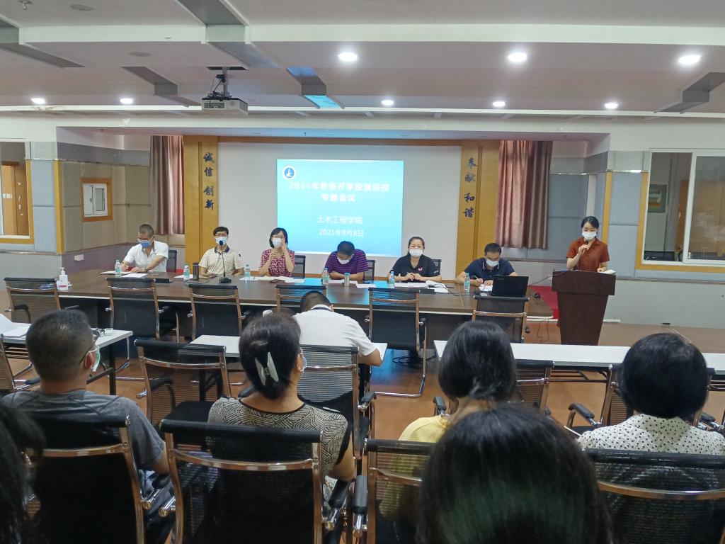 為貫徹落實(shí)國家、省市疫情防控工作部署,保障廣大師生生命安全和身體健康,確保秋季開學(xué)平穩(wěn)有序,8月8日上午, 土木工程學(xué)院在科技樓1007召開2021年秋季開學(xué)疫情防控暨教學(xué)工作專題會(huì)議。全體領(lǐng)導(dǎo)班子成員、教研室主任、全體行政人員、實(shí)訓(xùn)中心全體人員、全體輔導(dǎo)員、19級畢業(yè)班全體任課教師參加會(huì)議。