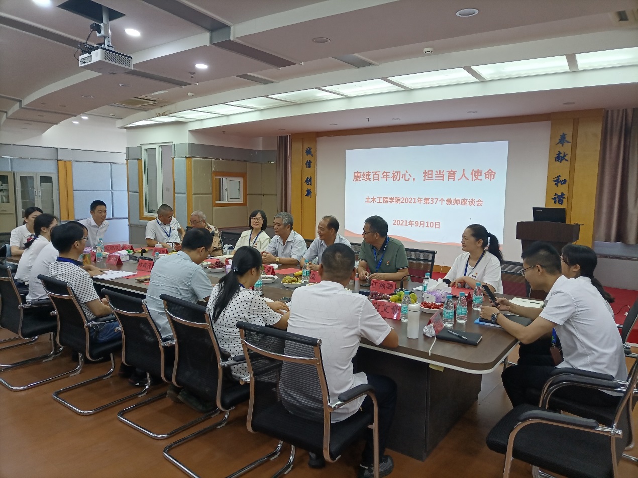 2021年9月10日上午,在全國第37個教師節(jié)到來之際,為進一步增加教師之間的交流,促進以老帶新、以熟帶生、以優(yōu)促新、互學(xué)共進,土木工程學(xué)院特邀請了退休老教師代表、教師代表和新進教師,在科技樓1007會議室開展了經(jīng)驗交流和座談會。