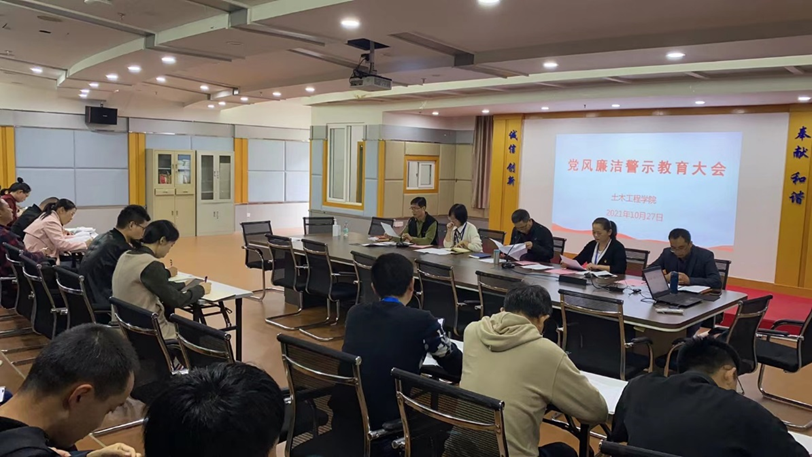 為貫徹落實全面從嚴(yán)治黨的要求,嚴(yán)明黨的政治紀(jì)律和政治規(guī)矩,深化反腐倡廉建設(shè),增強拒腐防變能力,營造風(fēng)清氣正的政治生態(tài),2021年10月27日,土木工程學(xué)院在科技樓1007會議室召開了黨風(fēng)廉潔警示教育大會。學(xué)院副科級以上干部、教研室主任、支部全體委員、輔導(dǎo)員及其他相關(guān)人員參加了會議。會議由學(xué)院紀(jì)檢委員、副院長卓維松主持。