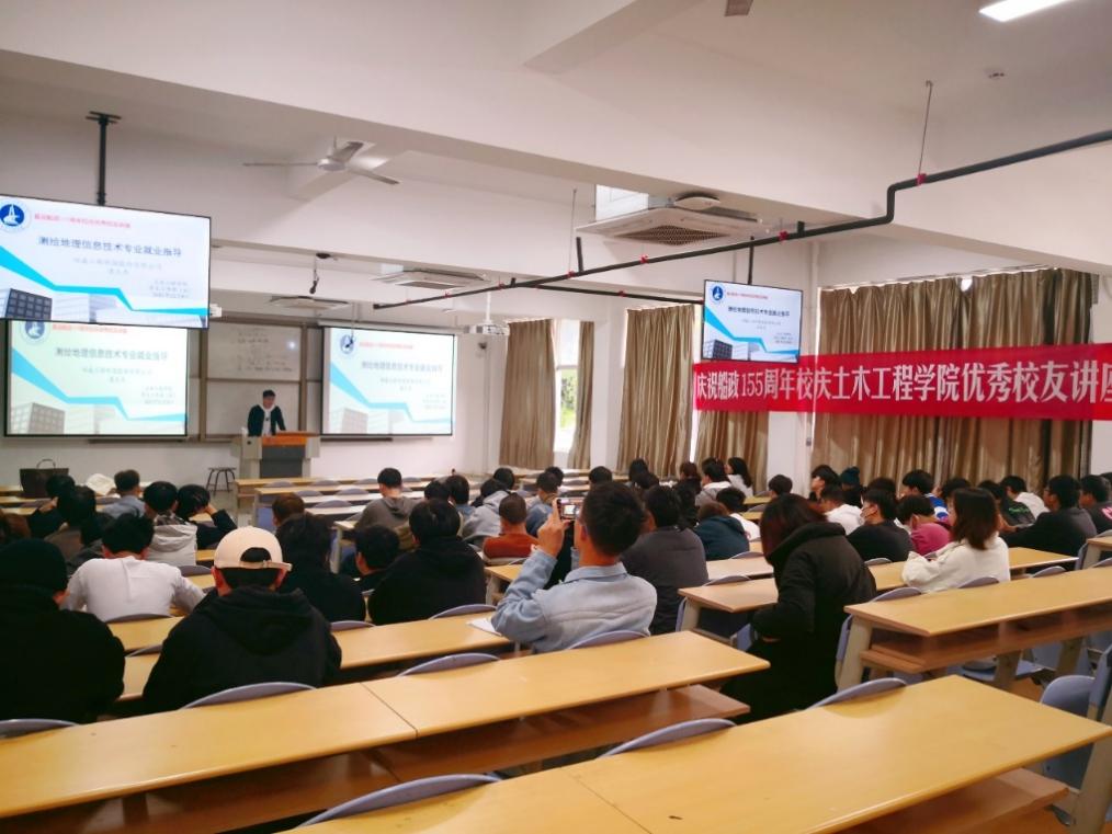 為了進(jìn)一步幫助學(xué)生加深測繪地理信息行業(yè)認(rèn)識,合理規(guī)劃職業(yè)路徑,提升就業(yè)能力,2021年12月8日下午,土木工程學(xué)院與學(xué)生工作部(處)在我校南區(qū)科技樓302教室舉辦了“慶祝船政155周年校慶”優(yōu)秀校友講座暨測繪地理信息技術(shù)專業(yè)就業(yè)指導(dǎo)講座。土木工程學(xué)院朱明栓副院長、測繪地理信息技術(shù)教研室老師和2020級測繪地理信息技術(shù)專業(yè)學(xué)生參加了本次講座。