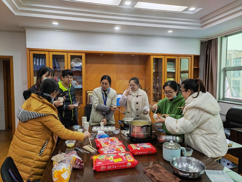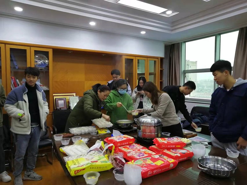 現(xiàn)場教職工們一同參與煮湯圓,煮水餃,氣氛溫馨十足。在活動過程中教師們樂在其中,熱情很高。在一片片歡聲笑語中端出一盤盤熱騰騰的餃子和湯圓,讓上完課的老師不僅享用了傳統(tǒng)美食,感受到了快樂,放松了心情,還增進了大家之間的感情,拉近了彼此的心,使大家感受到土木工程學(xué)院這個大家庭的和諧與溫暖。