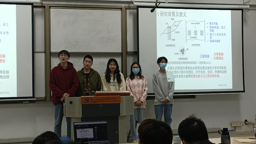 2022年4月18日,為積極推進(jìn)我院大學(xué)生創(chuàng)新創(chuàng)業(yè)工作,培養(yǎng)和提升大學(xué)生的創(chuàng)造精神、創(chuàng)新意識(shí)和創(chuàng)業(yè)能力,激發(fā)學(xué)生參與創(chuàng)新創(chuàng)業(yè)、投身創(chuàng)業(yè)實(shí)踐的熱情,土木工程學(xué)院雙創(chuàng)團(tuán)隊(duì)“邊坡衛(wèi)士”項(xiàng)目團(tuán)隊(duì)開(kāi)了板連式微型抗滑樁邊坡加固技術(shù)講座暨雙創(chuàng)校賽經(jīng)驗(yàn)交流會(huì)。本次講座吸引了道路與橋梁工程技術(shù)、建設(shè)工程監(jiān)理等專業(yè)的學(xué)生共計(jì)150余人。