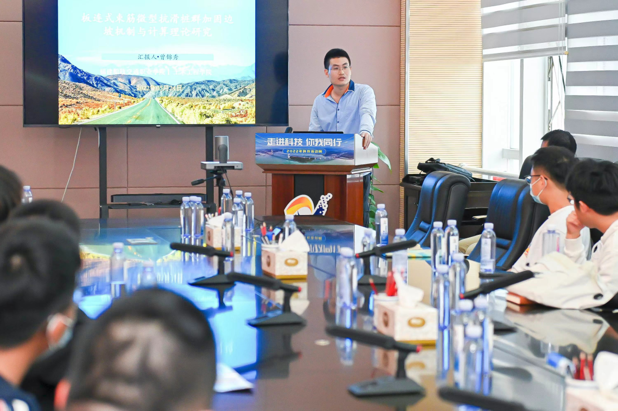 5月24日,由福建省交通科技發(fā)展集團(tuán)有限責(zé)任公司主辦的“走進(jìn)科技你我同行”2022年交通運(yùn)輸科技活動(dòng)周在福建省交通規(guī)劃設(shè)計(jì)院有限公司交通研發(fā)大樓21層隆重舉行。為廣泛宣傳我校在交通建設(shè)領(lǐng)域科技創(chuàng)新成果,土木工程學(xué)院“北斗變形監(jiān)測(cè)虛擬仿真培訓(xùn)平臺(tái)”和“交通基礎(chǔ)設(shè)施BIM+GIS信息化管養(yǎng)平臺(tái)”應(yīng)邀參加科技創(chuàng)新成果展示,曾錦秀博士應(yīng)邀開(kāi)展高新技術(shù)科普專(zhuān)題講座。