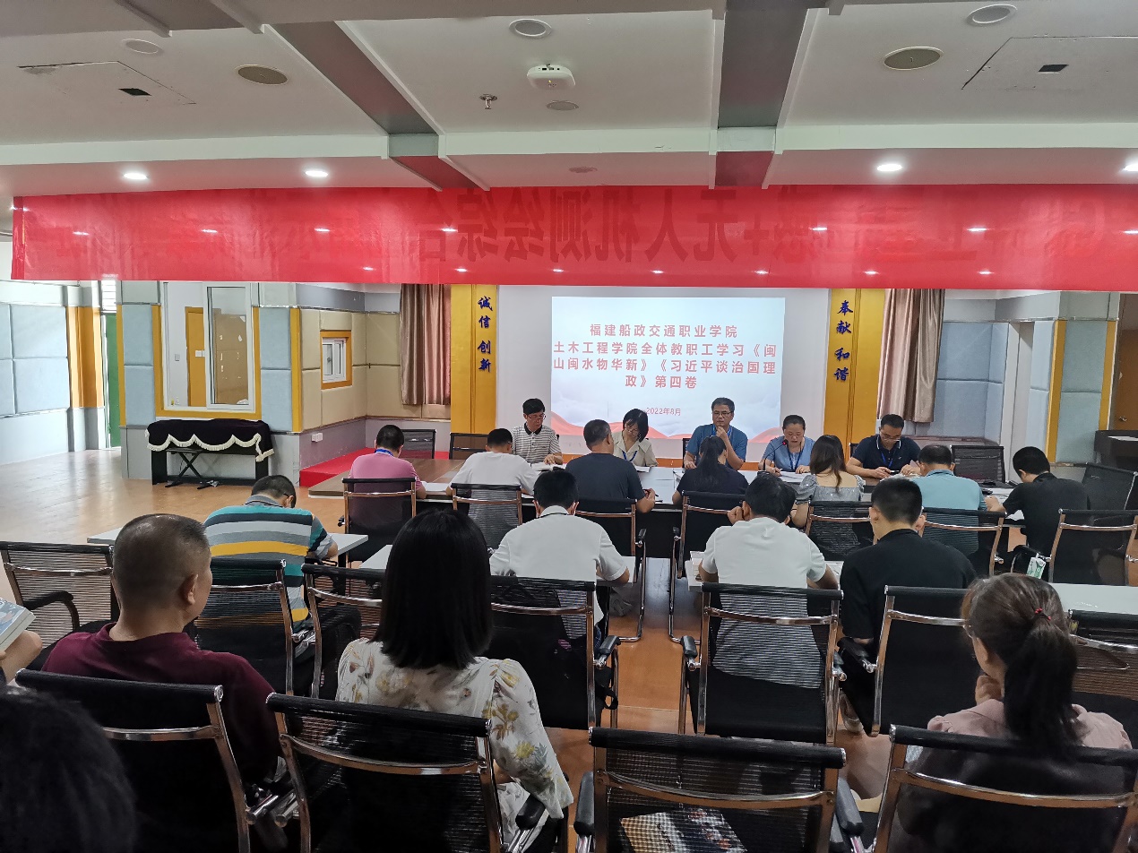 8月16日上午,土木工程學院召開黨總支理論學習中心組(擴大)學習會、全體教職工大會,集中學習《閩山閩水物華新——習近平福建足跡》、《習近平談治國理政》第四卷。