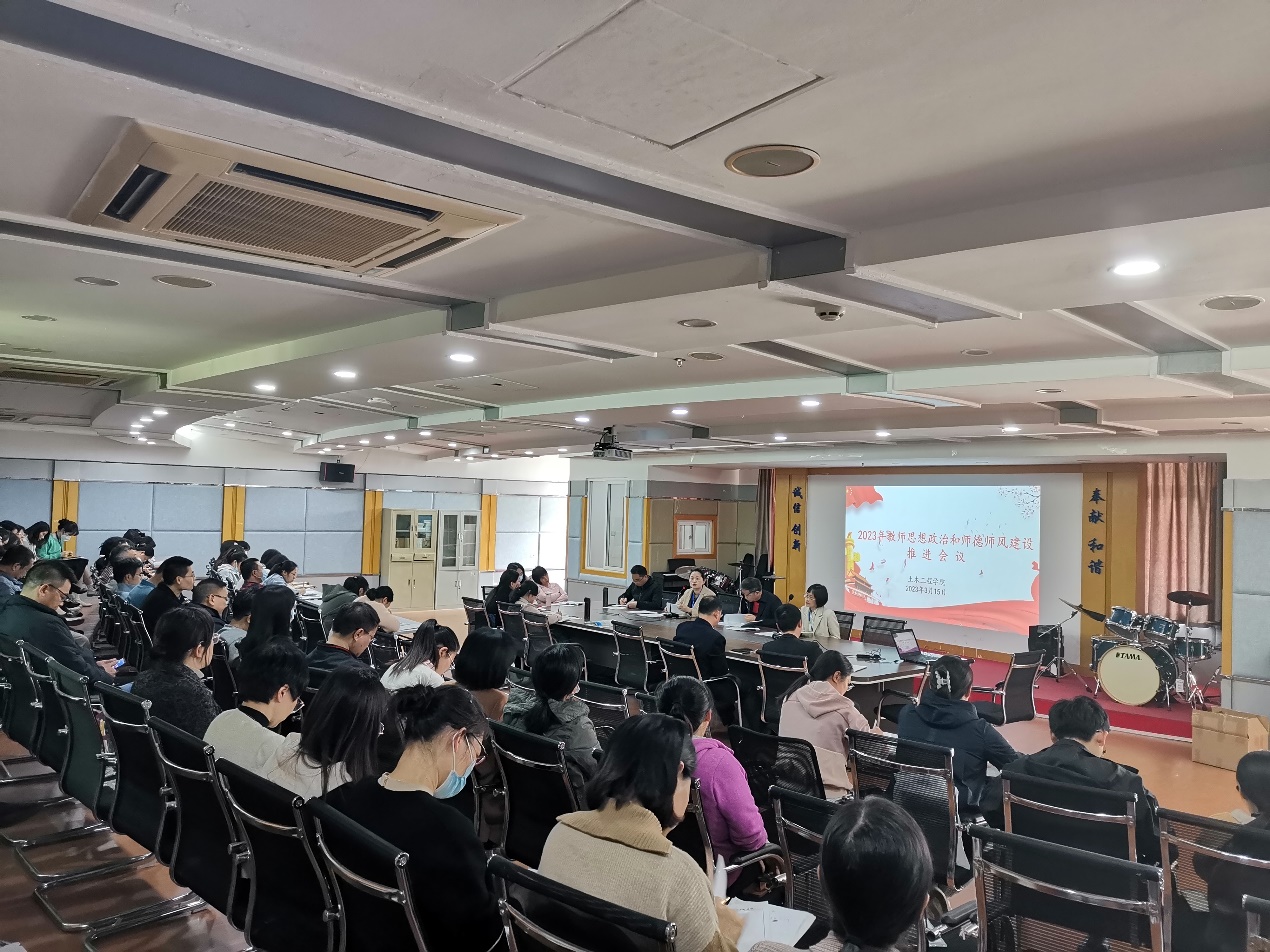 會議強調(diào),一是要提高政治站位,深入學(xué)習(xí)貫徹黨的二十大精神和習(xí)近平總書記關(guān)于新時代教師隊伍師德師風(fēng)建設(shè)的重要論述精神,以高度的責(zé)任感和使命感,充分認識加強教師思想政治和師德師風(fēng)建設(shè)對學(xué)院高質(zhì)量發(fā)展的重要意義;二是要時刻銘記立德樹人任務(wù),牢牢把握師德師風(fēng)作為評價教師隊伍素質(zhì)的第一標準,對師德違規(guī)問題“零容忍”;三是要強化提升教師思想政治工作質(zhì)量,不斷完善師德師風(fēng)建設(shè)長效機制,深化課程思政教學(xué)改革,構(gòu)建“三全育人”大思政育人體系,做“有理想信念、有道德情操、有扎實學(xué)識、有仁愛之心”的“四有”好老師;四是要在常態(tài)化開展師德教育的同時加強警示教育,劃“紅線”,守“底線”,筑“防線”,維護教師職業(yè)形象,提振師道尊嚴。