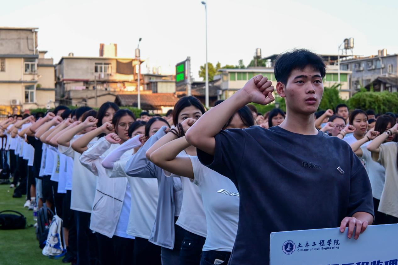 鮮艷的國(guó)旗點(diǎn)燃了每個(gè)人心中的愛(ài)黨愛(ài)國(guó)之情;震撼回響的宣誓,激發(fā)了土木青年學(xué)子的責(zé)任擔(dān)當(dāng)和奮進(jìn)豪情。
