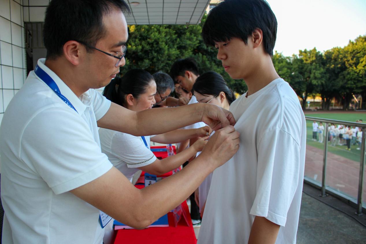 學(xué)院領(lǐng)導(dǎo)、老師為新生代表佩戴校徽。1157名新生帶著對(duì)未來(lái)的期待與熱情,從五湖四海匯聚到土木工程學(xué)院。佩戴上船政?;眨馕吨匠蔀榱艘幻按恕?,傳承世紀(jì)星火,奮斗正當(dāng)時(shí)!