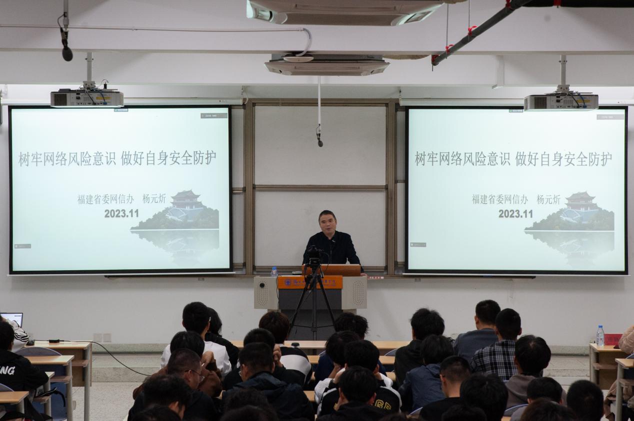 為進一步提高2023級新生網(wǎng)絡安全意識,樹立健康綠色的上網(wǎng)觀念,掌握必要的網(wǎng)絡安全防范知識。土木工程學院于11月28日,在福航園創(chuàng)新樓301舉辦“網(wǎng)絡安全知識進校園”網(wǎng)絡安全講座。本次講座邀請省委網(wǎng)信辦楊元炘處長主講,通過線上+線下結合方式,設置10個分會場同步直播,學院全體輔導員及1125名新生參加講座。