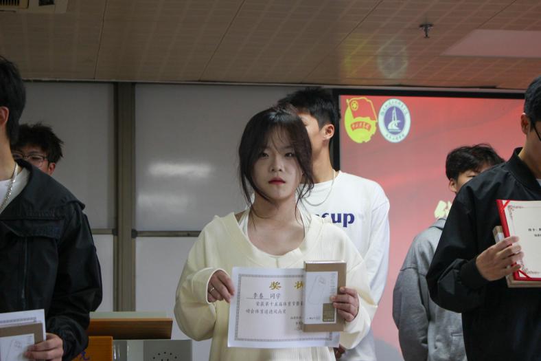 首先,學(xué)院團(tuán)委書記龔燦寧對(duì)本次運(yùn)動(dòng)會(huì)獲獎(jiǎng)選手表示祝賀,也對(duì)工作人員的付出表示感謝。接著,學(xué)院為獲獎(jiǎng)運(yùn)動(dòng)員頒發(fā)了榮譽(yù)證書與獎(jiǎng)品,以肯定他們?cè)诒荣愔械?/span>辛苦付出,這既是對(duì)個(gè)體努力的認(rèn)可,也是對(duì)整體團(tuán)隊(duì)的鼓勵(lì)。