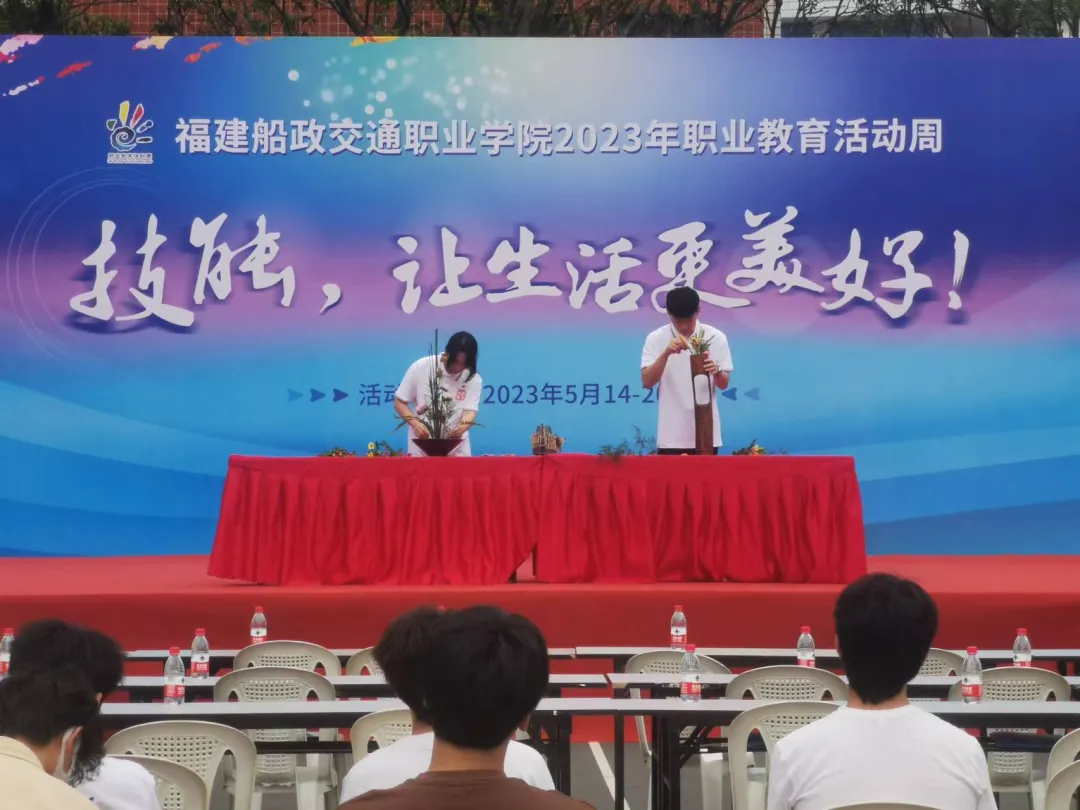 5月14號(hào),福建船政交通職業(yè)學(xué)院2023年職教職業(yè)教育活動(dòng)周開幕式正式啟動(dòng)。在開幕式上,土木工程學(xué)院建筑裝飾工程技術(shù)專業(yè)的學(xué)生展示了中國傳統(tǒng)插花表演項(xiàng)目。