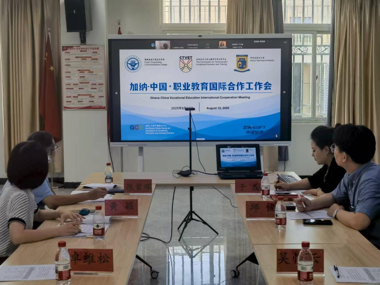 8月12日,福建船政交通職業(yè)學(xué)院與加納阿克拉技術(shù)大學(xué)召開(kāi)“職教出海”首次合作工作會(huì)議。會(huì)議由加納教育部技能課程開(kāi)發(fā)與評(píng)估中心主任Peter Boahin主持,雙方院校領(lǐng)導(dǎo)及相關(guān)機(jī)構(gòu)代表參會(huì)。