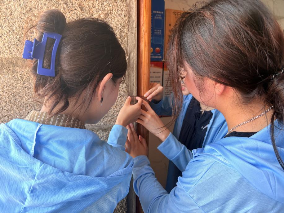 與北港村的熱鬧不同,光裕村的石厝仍停留在“原始狀態(tài)”:花崗巖墻身爬滿青苔,屋頂瓦片多有破損。實(shí)踐隊(duì)逐戶走訪發(fā)現(xiàn),這里的石厝保留著更原始的樣子,普遍面臨三大難題:墻體裂縫、屋頂漏雨等保護(hù)問題突出;缺乏改造資金與專業(yè)技術(shù);無(wú)明確產(chǎn)業(yè)規(guī)劃,石厝價(jià)值難以釋放。 隊(duì)員們記錄石厝原始風(fēng)貌,詳細(xì)標(biāo)注建筑病害,為后續(xù)對(duì)比分析積累一手資料。