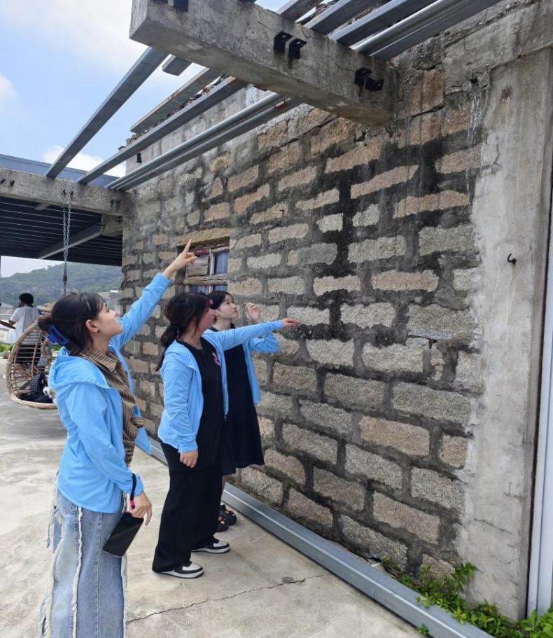 作為開發(fā)成熟的文旅樣本,北港村的石厝早已褪去原始漁村的單一功能。實(shí)踐隊(duì)以建筑專業(yè)視角深度調(diào)研:用卷尺測(cè)量花崗巖墻體厚度、記錄屋頂坡度與防風(fēng)石塊排布,將數(shù)據(jù)錄入《北港村石厝建筑檔案》,系統(tǒng)梳理“雙軌墻石結(jié)構(gòu)”“海洋紋樣飾建筑”等獨(dú)特智慧;走訪村民與民宿,記錄“外古內(nèi)新”改造模式——保留石墻原貌的同時(shí),引入玻璃窗與智能家居,既守住文化根脈又提升居住體驗(yàn)。 產(chǎn)業(yè)調(diào)研更顯成效:石厝民宿客流穩(wěn)定,特色海鮮小吃帶動(dòng)村民增收明顯,“住石厝、品海味、悟文化”的文旅鏈條已形成閉環(huán)。