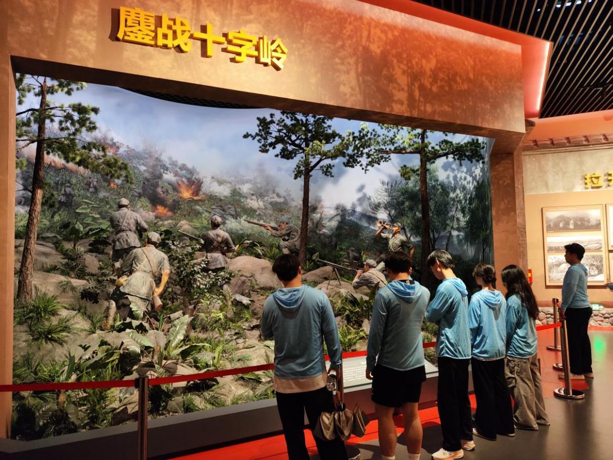 沉浸式學(xué)習(xí):成員們駐足于中央紅軍首次繳獲的“馬克思號”飛機(jī)模型下,觀看著1932年漳州戰(zhàn)役中紅軍智取敵機(jī)的故事;在《鏖戰(zhàn)十字嶺》雕塑前,感受紅軍天寶山?jīng)Q戰(zhàn)的英勇場景。
